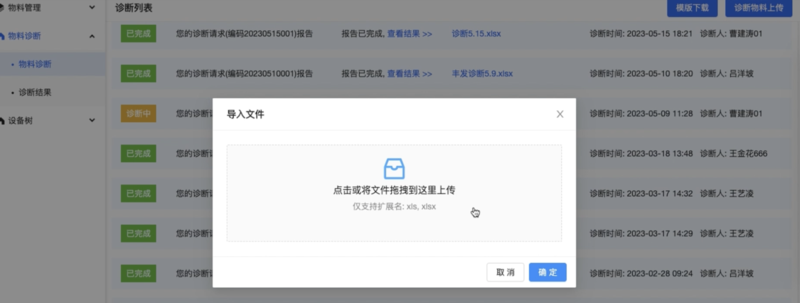 第二步上传需要诊断的物料文件